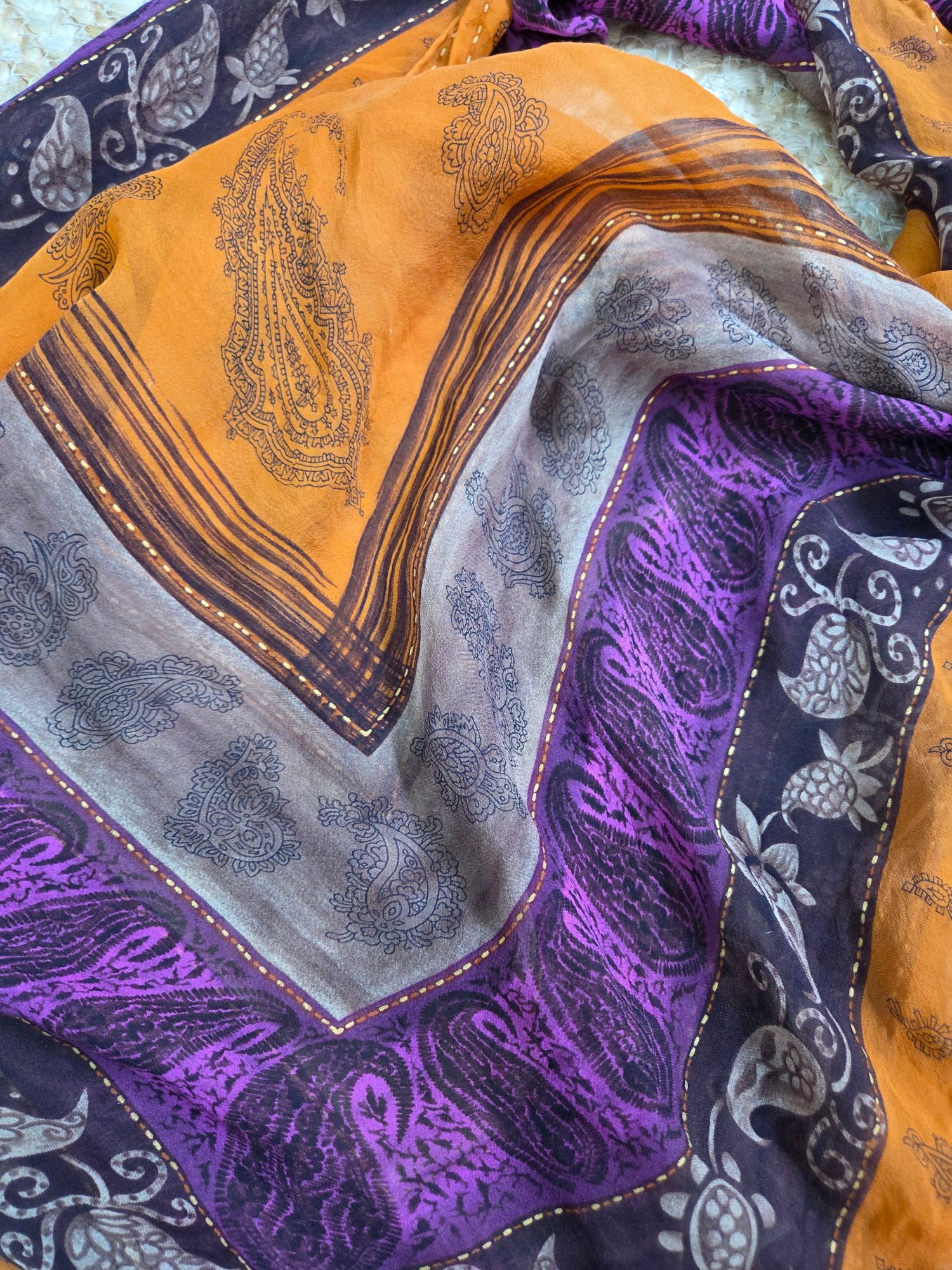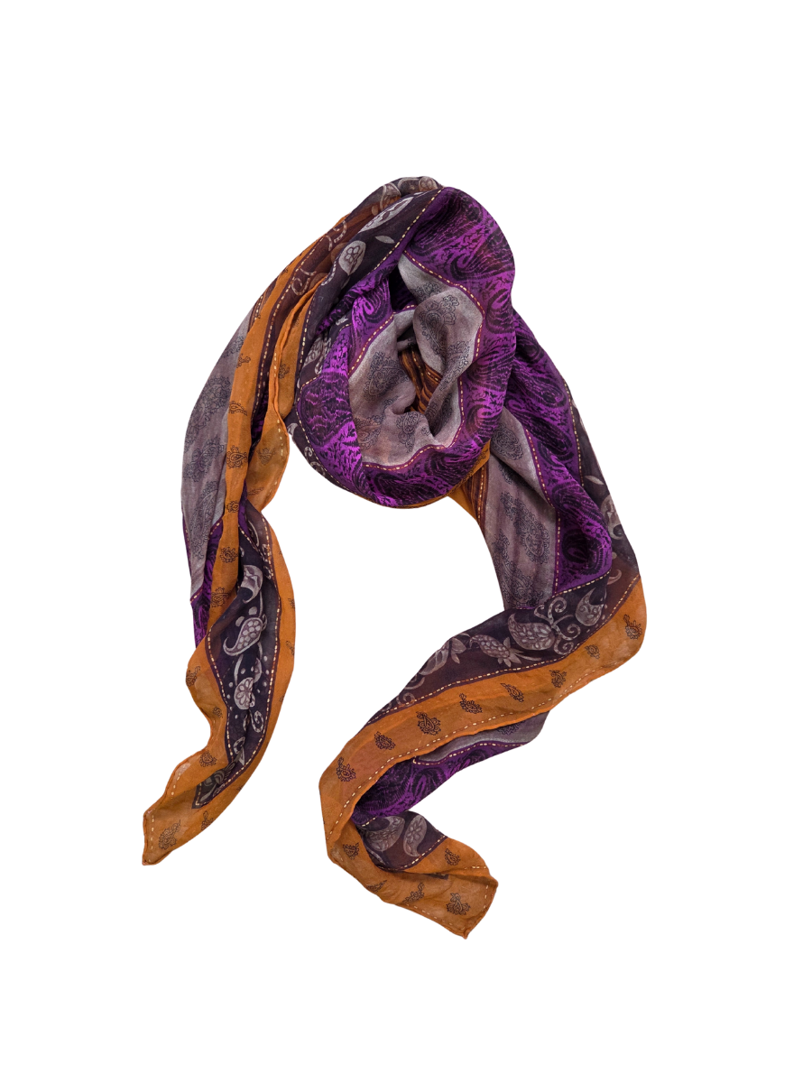 Large Orange Brown Purple Silk Square Scarf